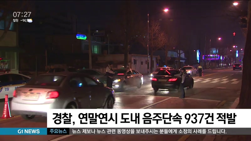 강원경찰청에 따르면, 11월 1일부터 1월까지 도내에서는 모두 937건의 음주운전이 적발됐으며, 이 중 364건은 면허 정지수치, 나머지 573건은 면허 취소수치인 것으로 집계됐습니다.