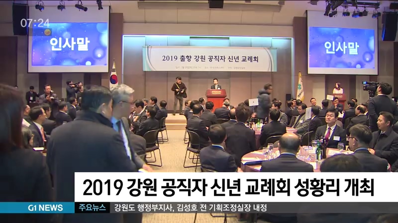 강원도 출신 공직자와 출향 인사 등이 한자리에 모여 '새로운 강원'을 위해 인적 네트워크를 다지는 '2019 강원 공직자 신년 교례회'가 어제 저녁, 한국프레스센터에서 개최됐습니다.