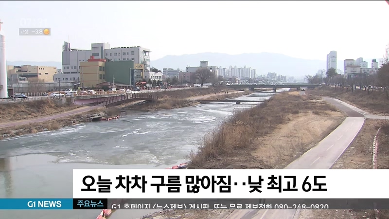 낮 최고기온은 영서지역이 영하 1도에서 영상 5도, 영동지역이 3도에서 6도의 분포로 어제보다 높거나 비슷하겠습니다.