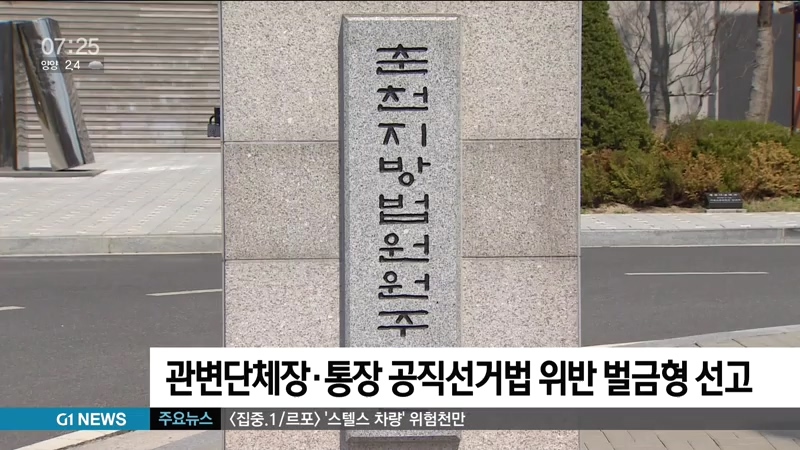 춘천지법 원주지원은 공직선거법 위반 혐의로 기소된 원주지역 관변단체장 65살 김모씨에게 벌금 90만원, 원주지역 통장 52살 최모씨, 64살 조모씨에게는 각각 벌금 70만원을 선고했습니다.