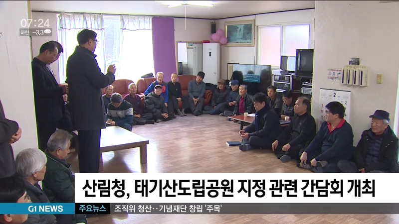산림청은 어제 횡성 태기산 인근 주민들을 방문해, 태기산도립공원 지정 요구와 관련한 의견을 수렴하기 위한 간담회를 개최했습니다.