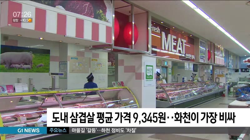 강원물가정보망에 따르면, 도내 국내산 삼겹살 500g의 평균 가격은 9천 345원으로 조사된 가운데, 시 단위 지역은 8천825원인 반면, 군 단위 지역은 9천676원에 달했습니다.