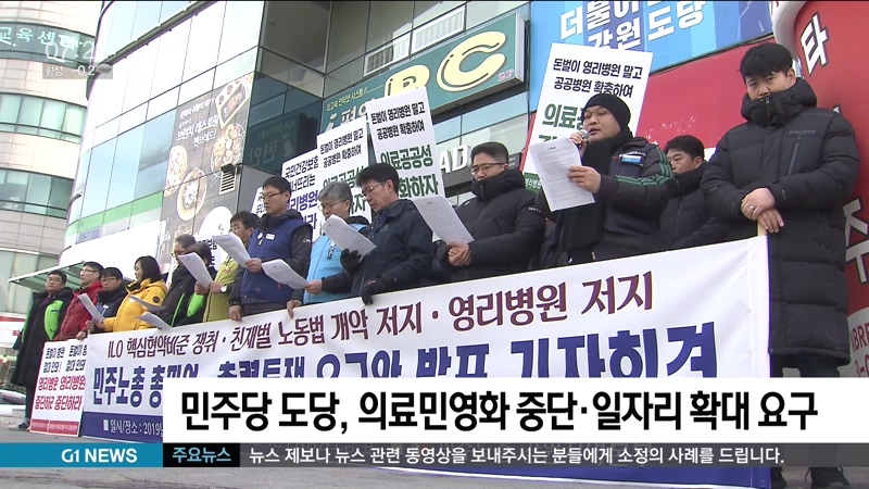 더불어민주당 강원도당은 어제 도당 앞에서 기자회견을 열고, 비정규직 철폐와 제주영리병원 허가 취소 등을 요구했습니다.