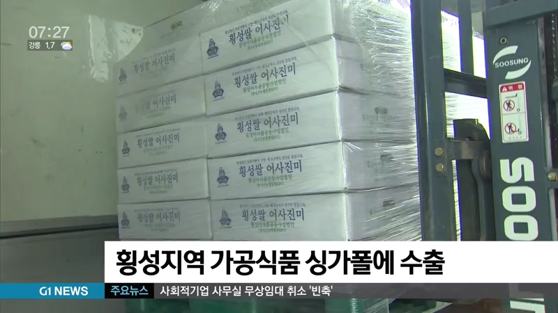 횡성지역의 가공식품이 올해부터 동남아시아 무역 허브인 싱가폴에 본격 수출될 전망입니다.
