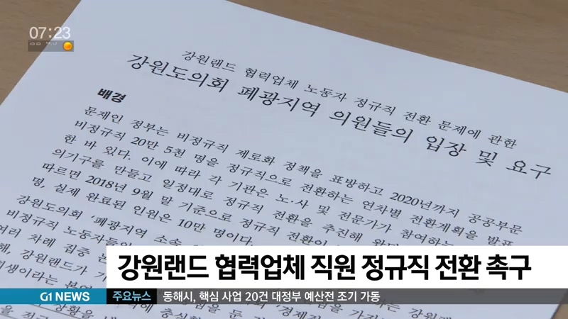 또, 강원랜드가 폐광지역 경제 회생이라는 설립 목적에 충실하기 위해, 자회사나 사회적기업으로의 전환이 아닌 정규직 전환으로 추진해 줄 것을 촉구했습니다.