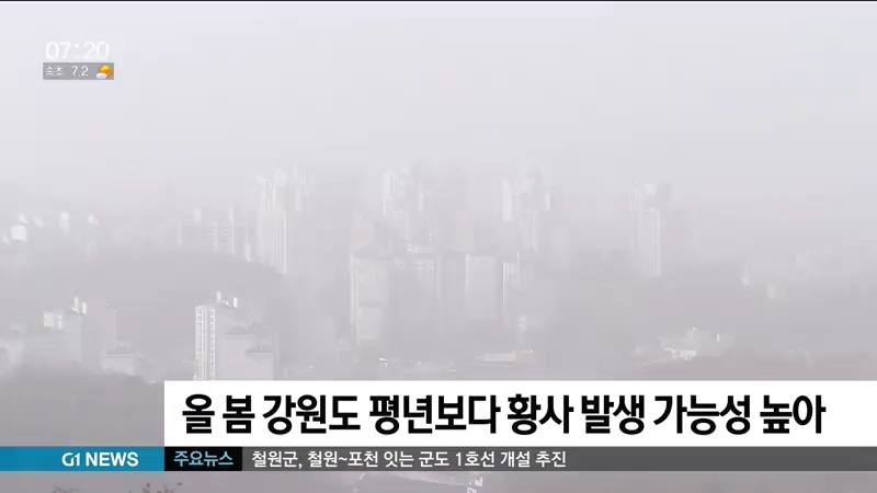 올 봄 강원도는 기온 변화가 큰 가운데, 평년보다 황사가 많이 발생할 것으로 전망됩니다.