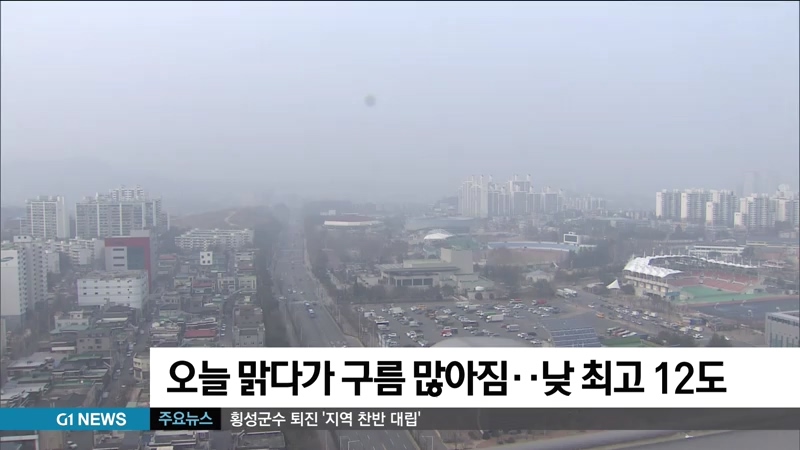 낮 최고기온은 영서지역이 6도에서 12도, 영동지역이 9도에서 11도로, 오늘과 비슷하겠습니다.