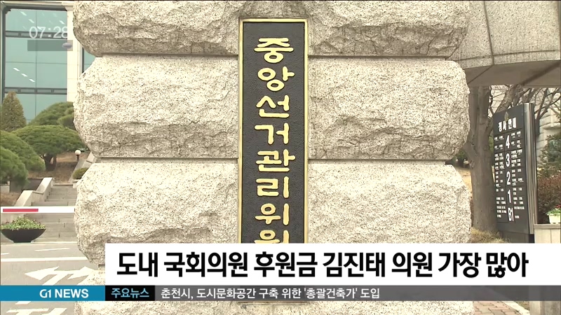 도내 국회의원 가운데 김진태 의원의 후원금이 가장 많은 것으로 나타났습니다.