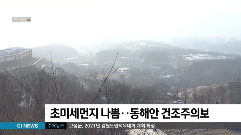 강원지방기상청은 도내 전역이 초미세먼지 나쁨 수준을 보이겠고, 동해안은 건조주의보가 발효된 가운데 매우 건조하겠다며, 건강과 화재 예방에 주의해 줄 것을 당부했습니다.