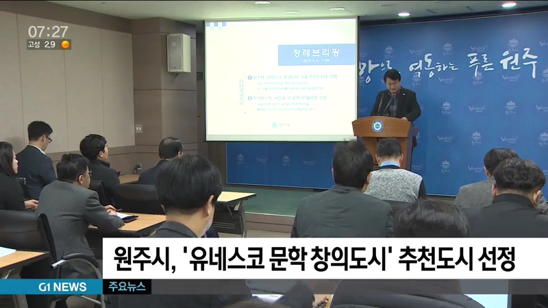 원주시가 '문학 분야'의 유네스코 창의도시 네트워크 가입을 위한 국내 추천도시로 선정됐습니다.
