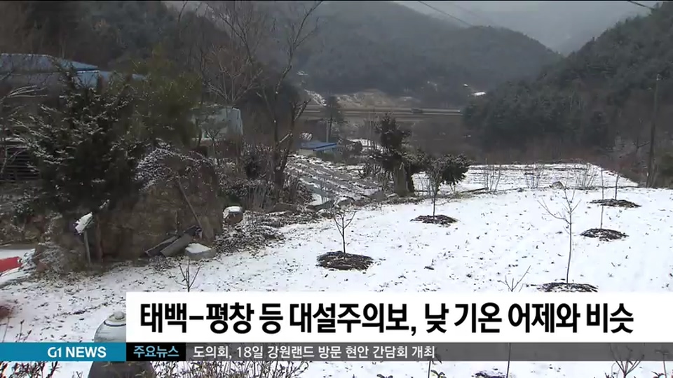 현재 태백과 평창 등 도내 산간지역에 대설주의보가 내려진 가운데 곳에따라 비나 눈이 내리고 있습니다.
