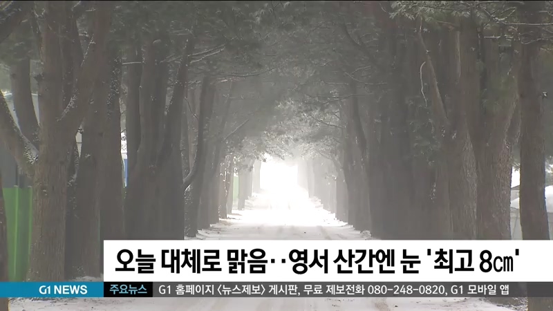 오늘 대체로 맑음..영서 산간엔 눈 '최고 8cm'