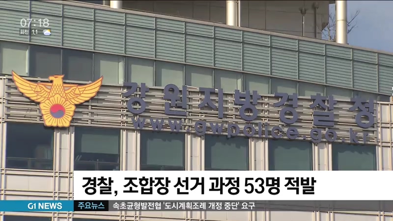 강원지방경찰청에 따르면, 제2회 전국 동시 조합장 선거와 관련해 부정 선거운동 사례 50건에 53명이 적발됐으며,