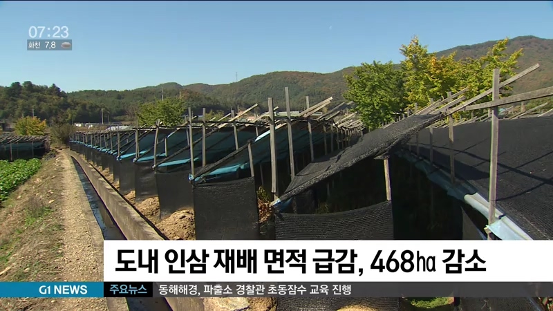 도내 인삼 재배 면적 급감, 468ha 감소