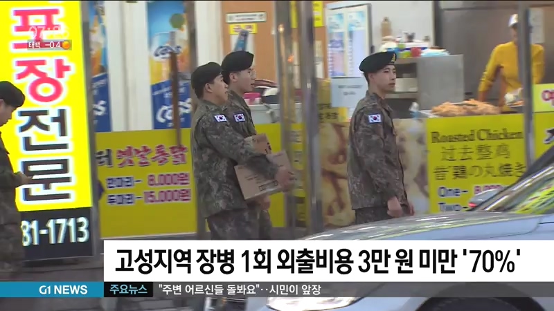 고성에서 복무하는 장병들은 평일 외출 시 상당수가 3만원 미만의 금액을 쓰는 것으로 나타났습니다.