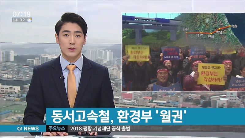 "하지만 이 곳 춘천역에서 계속 이어져 속초까지 연결해야 하는 동서고속화철도 사업은 환경부에 걸려 한발도 못 나가고 있습니다."