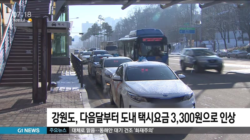 강원도, 다음달부터 도내 택시요금 3,300원으로 인상