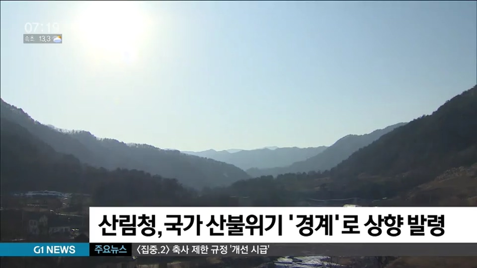 건조한 날씨가 계속되면서 국가 산불위기 경보 단계가 주의에서 경계로 상향 발령됐습니다.
