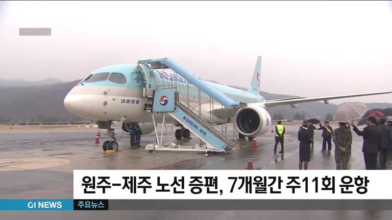 강원도와 대한항공은 어제(31일) 증편 운항을 시작으로 오는 10월 26일까지 130석 규모의 항공기를 투입해, 원주-제주 노선을 기존보다 4회 늘어난 주 11회 운항합니다.