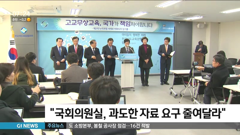 교육감들은 입장문을 통해 국회의원들의 서류 등의 자료 제출 요구는 정당한 권한이지만, 과도하고 중복되는 요구로 인해 일선 교육 현장의 정상적 운영에 지장이 있다고 밝혔습니다.