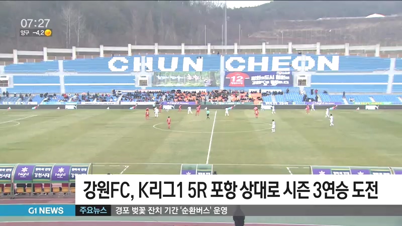 현재 강원FC는 최근 전북과 성남전에서 잇따라 승전고를 울리며 시즌 전적 2승 1무 1패, 승점 7점으로 5위에 올라 있습니다.