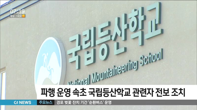 교내에서 술판을 벌이고, 강사료 허위지급을 지시하는 등 속초 국립등산학교가 파행 운영되고 있다는 G1 보도와 관련해, 해당 교육책임자가 전보 발령 조치됐습니다.