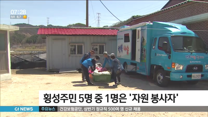 횡성군 자원봉사센터에 따르면, 지난달 기준 지역의 자원봉사자 등록 수는 만 53명으로, 횡성인구 4만 6천여 명의 21% 수준이었습니다.