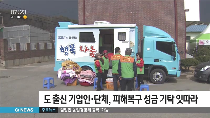 삼성그룹과 LG, 현대차 등 대기업은 물론, 도출신 기업인과 단체 등이 산불 피해 복구 성금을 기탁하고 있습니다.