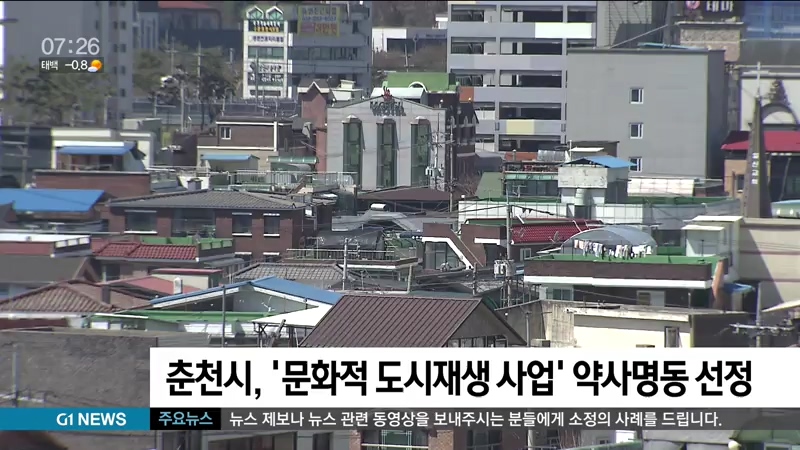 춘천시는 정부의 '2019 문화적 도시재생사업'에 약사명동이 선정됨에 따라 사업비 6억원을 들여 약사동 일대에, 주민은 물론, 지역 예술가와 방문객을 위한 마을 공방과 여행 안내센터 등을 조성한다고 밝혔습니다.