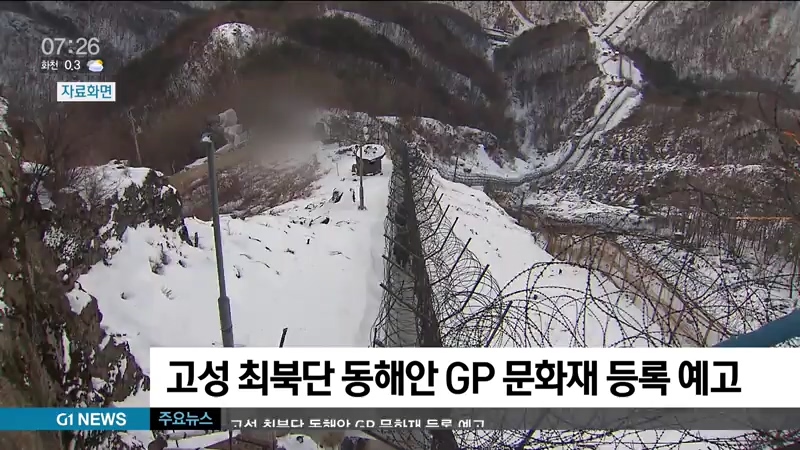지난해 9.19 군사합의에 따라 남북이 철수한 비무장 지대 내 감시초소 GP 가운데 유일하게 원형을 보존하기로 한 우리나라 최동북단 고성 동해안 GP가 문화재로 지정됩니다.
