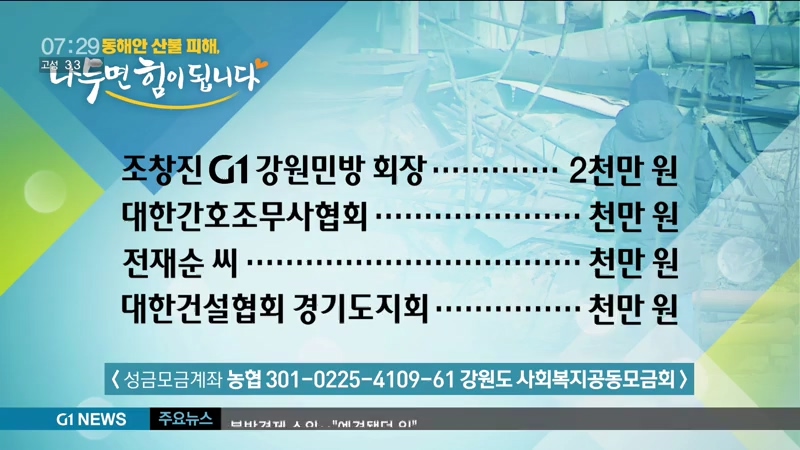 <성금 기탁자> 동해안 산불피해, 나누면 힘이 됩니다