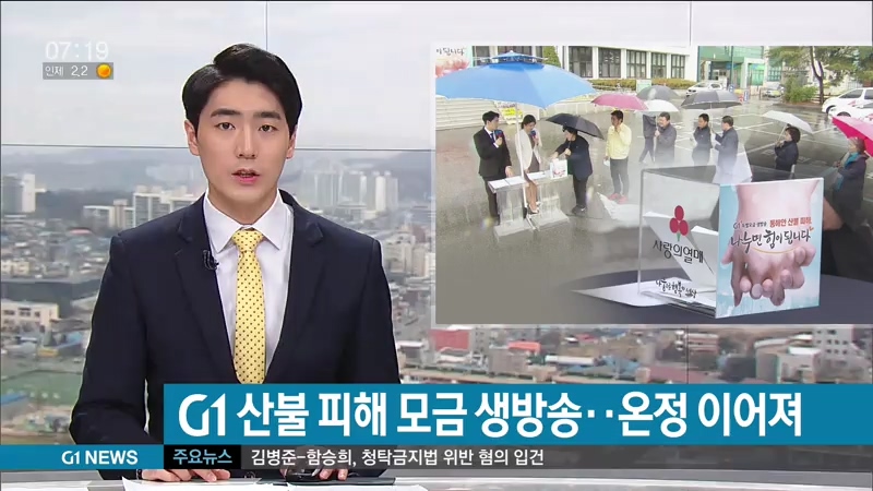 G1 강원민방과 강원도 사회복지공동모금회가 공동으로 마련한 '동해안 산불 피해, 나누면 힘이 됩니다' 특별 모금 생방송에는 산불 피해를 입은 이웃들을 돕기 위한 온정이 이어졌습니다.