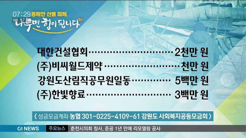 이어서, 동해안 산불 피해 복구와 이재민을 돕기 위한 성금을 보내주신 분들입니다.
