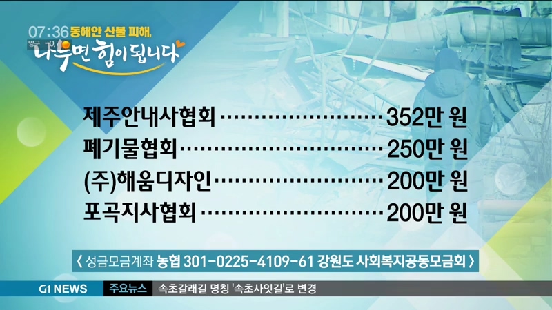 <성금기탁자> 동해안 산불피해, 나누면 힘이 됩니다