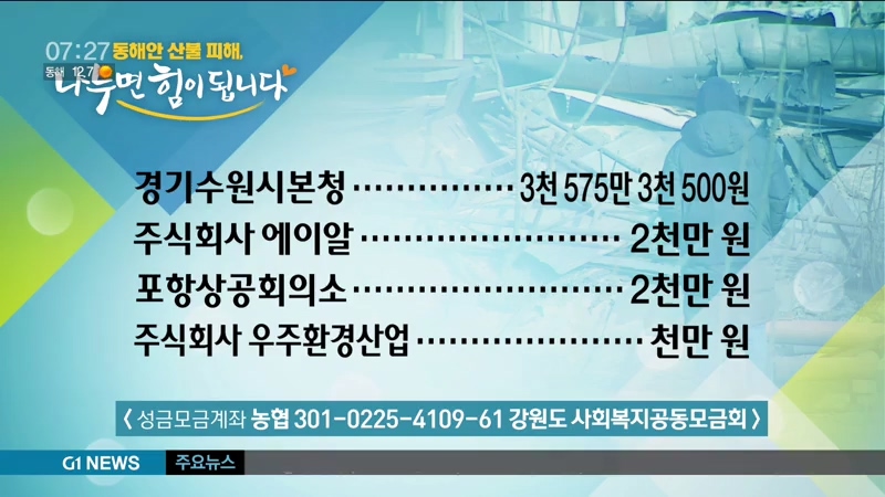 <성금기탁자> 동해안 산불피해, 나누면 힘이 됩니다