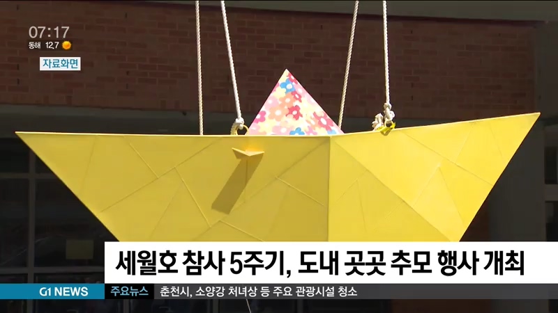 춘천여고 학생회도 중앙현관에 추모글 쓰기와 전시뢰를 열고, 원주 섬강초교는 세월호 리본 나눠주기와 희생자 추모 메시지로 벽면 꾸미기 등 희생자들을 기리는 행사가 이어집니다.