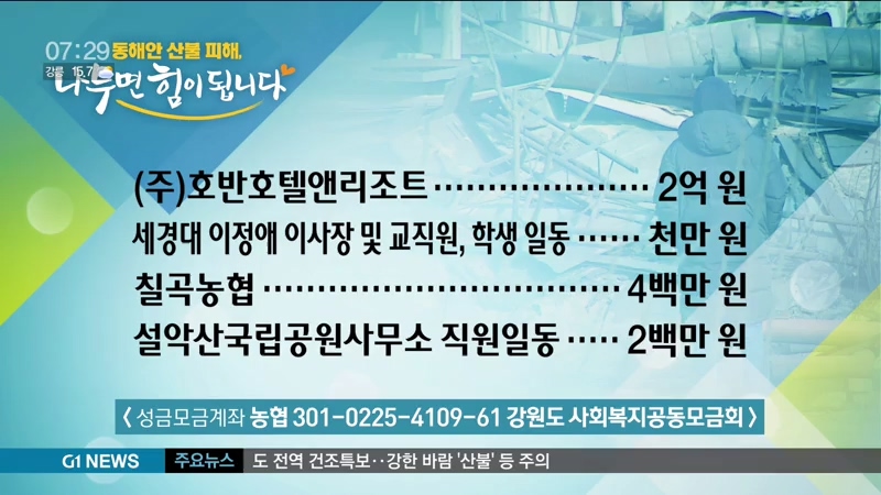 <성금 기탁자> 동해안 산불피해, 나누면 힘이 됩니다
