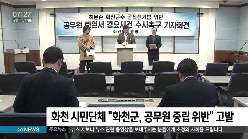 화천지역 시민단체가 화천군 공무원들이 정치적 중립을 위반했다며, 화천군을 검찰에 고발했습니다.