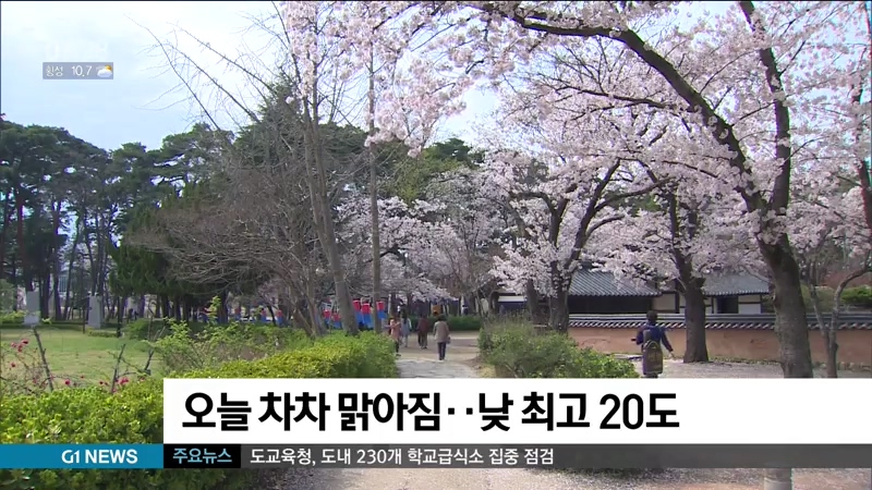 오늘 차차 맑아짐..낮 최고 20도