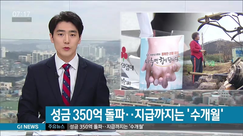 "하지만 이재민들에게 실제 성금이 지급되기까지는 길게는 수 개월이 걸릴 전망입니다."
