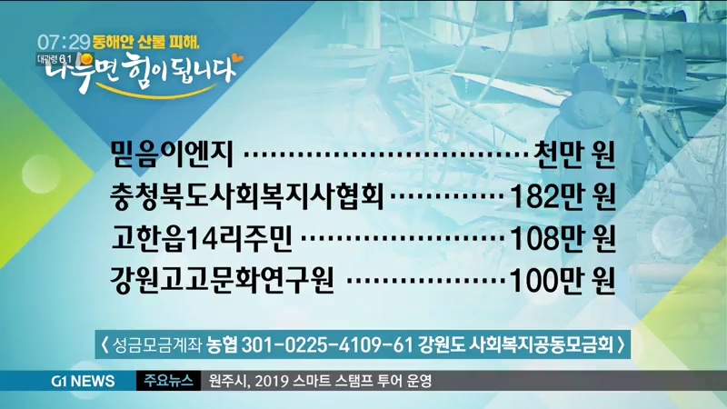 <성금 기탁자/일> 산불피해, 나누면 힘이 됩니다