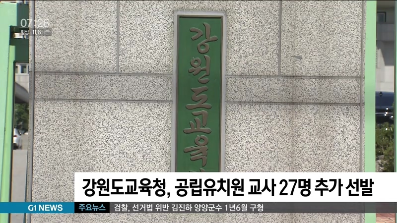 강원도교육청, 공립유치원 교사 27명 추가 선발