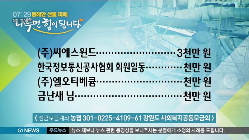 <성금 기탁자> 동해안 산불피해, 나누면 힘이 됩니다