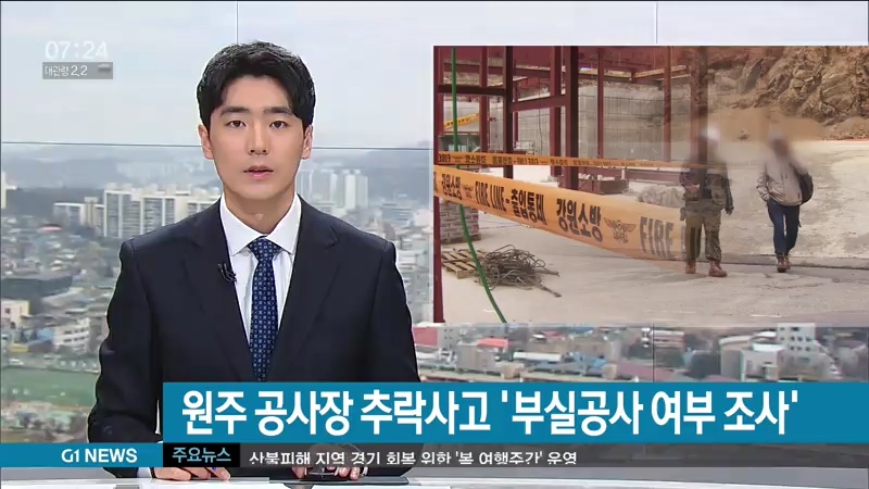 원주 공사장 추락사고 '부실공사 여부 조사'