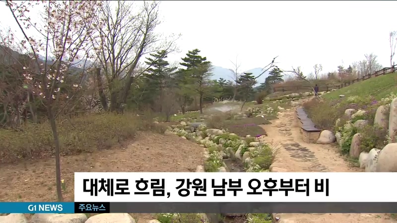 오늘 강원도는 대체로 흐린 가운데, 남부 지역의 중심으로 오후부터 비가 조금 내리겠습니다.