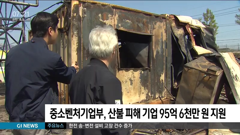 중소벤처기업부는 도내 산불 피해 기업을 돕기 위해, 95억 6천만 원의 정책 자금을 지원했다고 밝혔습니다.