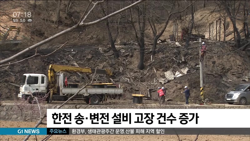 고성 산불의 원인으로 지목된 특고압 전선의 관리 문제가 논란이 되고 있는 가운데, 지난해 한국전력에서 운영하는 송.변전 설비의 고장 건수가 전년에 비해 증가한 것으로 나타났습니다.