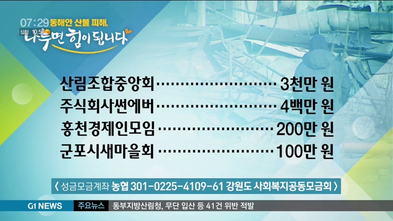 <성금 기탁자> 동해안 산불피해, 나누면 힘이 됩니다