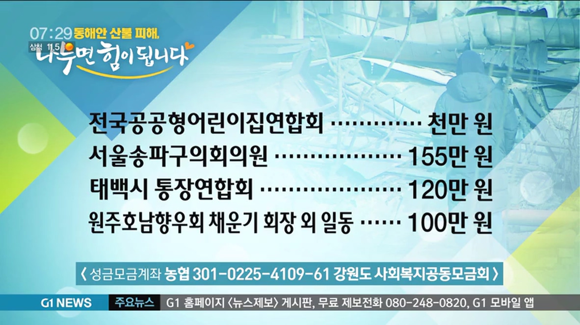 <성금 기탁자> 동해안 산불피해, 나누면 힘이 됩니다