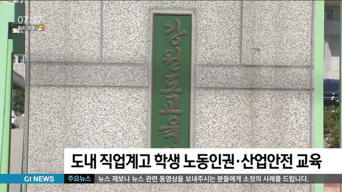 강원도교육청은 도내 모든 직업계고 3학년 학생과 도제과정 운영학교 2학년 학생에게 산업안전 보건과 근로관계법에 대한 사이버 교육을 진행한다고 밝혔습니다.